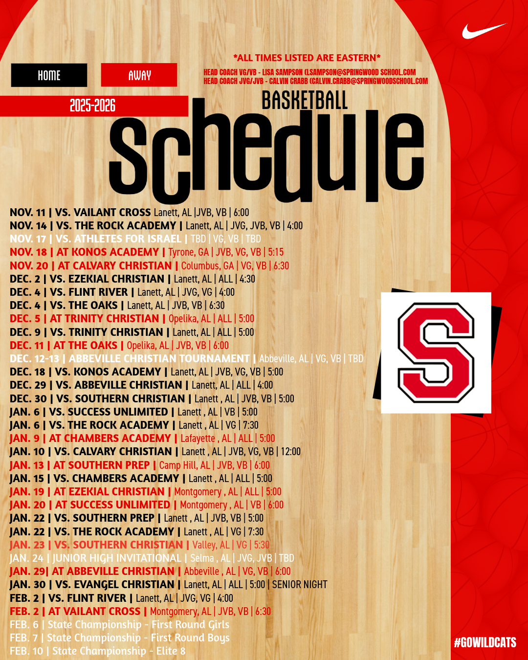 About Welcome Mission and Vision Memberships and Accreditations School Information and Services Employment Opportunities 2025 Impact Report The Springwood Fund Admissions Welcome Apply Today Request Information Tuition Assistance Alabama Scholarships Tuition Information International Welcome Springwood International House Residential Life Campus and Location Application Information Academics Welcome Primary School Elementary School Jr High School High School College, Career, & Academic Counseling Athletics Welcome Our Sports Basketball Cheerleading Baseball Golf Soccer Softball Track and Field Football Volleyball Cross Country Fishing Athletic Complex Forms Listen Live! Wildcat Athletic Association Campus Life Welcome Fine and Performing Arts Spiritual Life Organizations/Clubs Core Values Community Service Interim Days Calendar Alumni Directory Donate Now